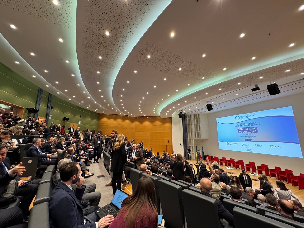 5 березня 2025 року в Мілані відбувся підготовчий бізнес-форум до Конференції з відновлення України URC 2025. У Палаццо Ломбардія зібралося близько 500 учасників — представники компаній з Італії, України та інших країн. Усі разом вони обговорювали, як допомогти Україні відбудуватися і підготуватися до вступу в ЄС. Цей форум став важливим кроком до великої конференції в Римі у 2025 році, яка має визначити основні напрямки відновлення України.